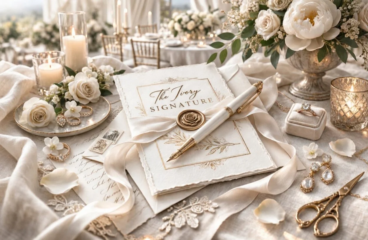 Timeless Beauty — We create experiences wrapped in ivory sophistication, champagne warmth, and lasting memories.